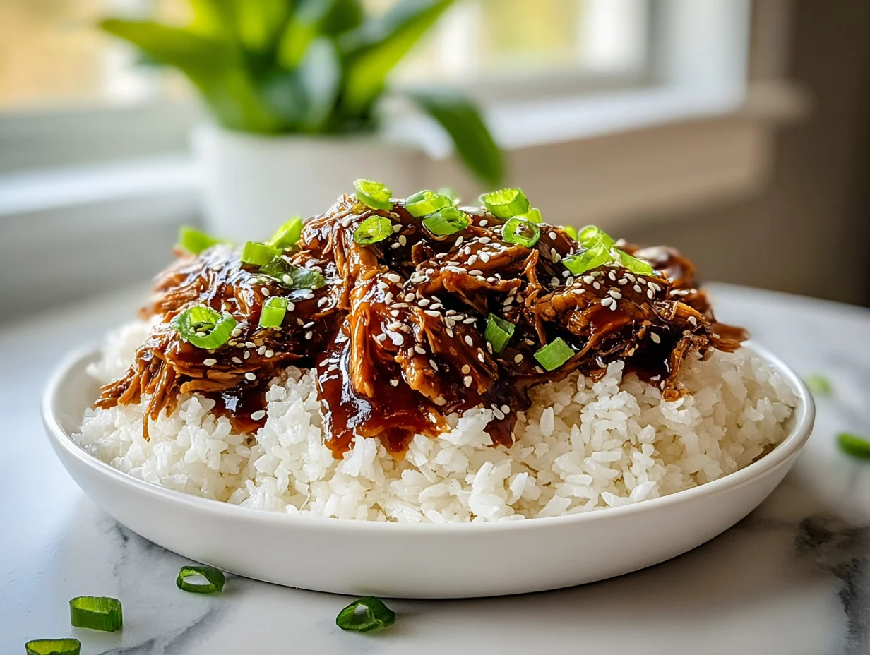 This shredded teriyaki chicken is endlessly versatile — it works as a bowl topping, a wrap filling, or a party appetizer. The rich, glossy glaze pairs beautifully with neutral starches and crisp vegetables, giving you plenty of room to change up your plate every night of the week.