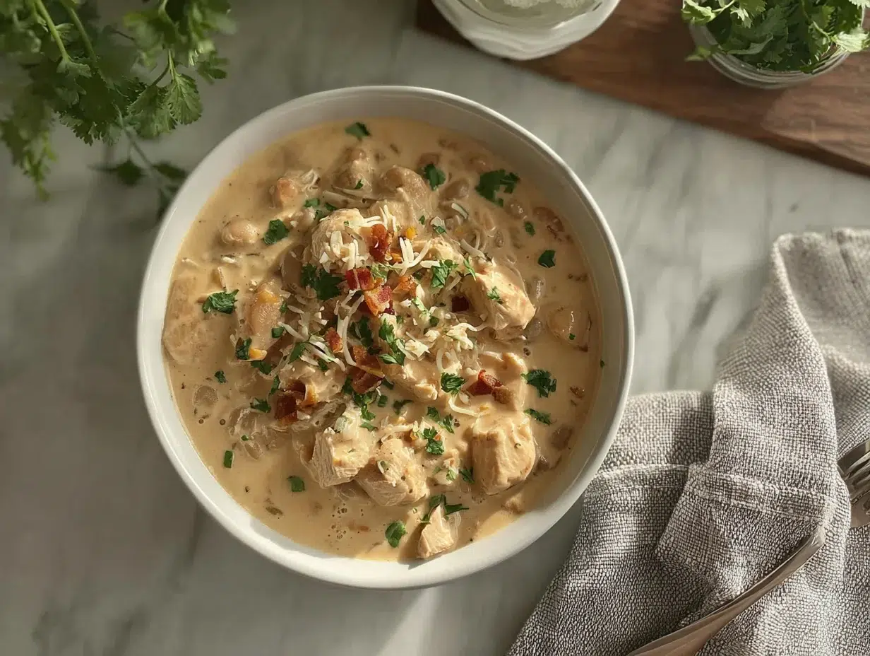 Keto Cream Cheese Chicken Chili is a low-carb, one-pot dinner with a creamy finish and gentle heat, and this guide expects prep plus cooking for a total of . Difficulty is easy, with sautéing, simmering, and a smooth emulsion as the key skills. Expect softened vegetables, tender chicken, and a glossy, chili-spiced broth that thickens naturally.